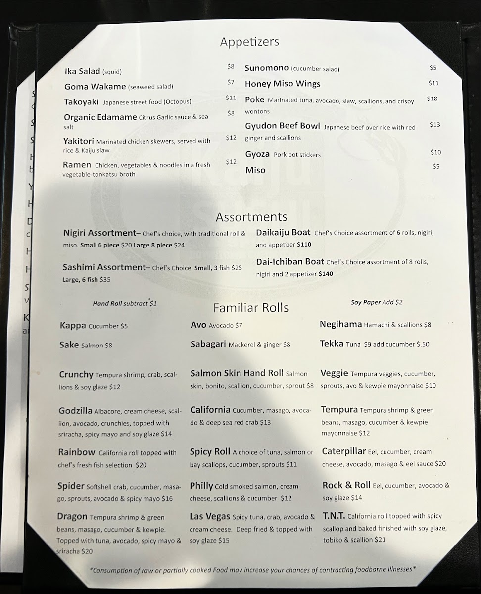 Discover the Flavors of Kaiju Sushi & Spirits Menu